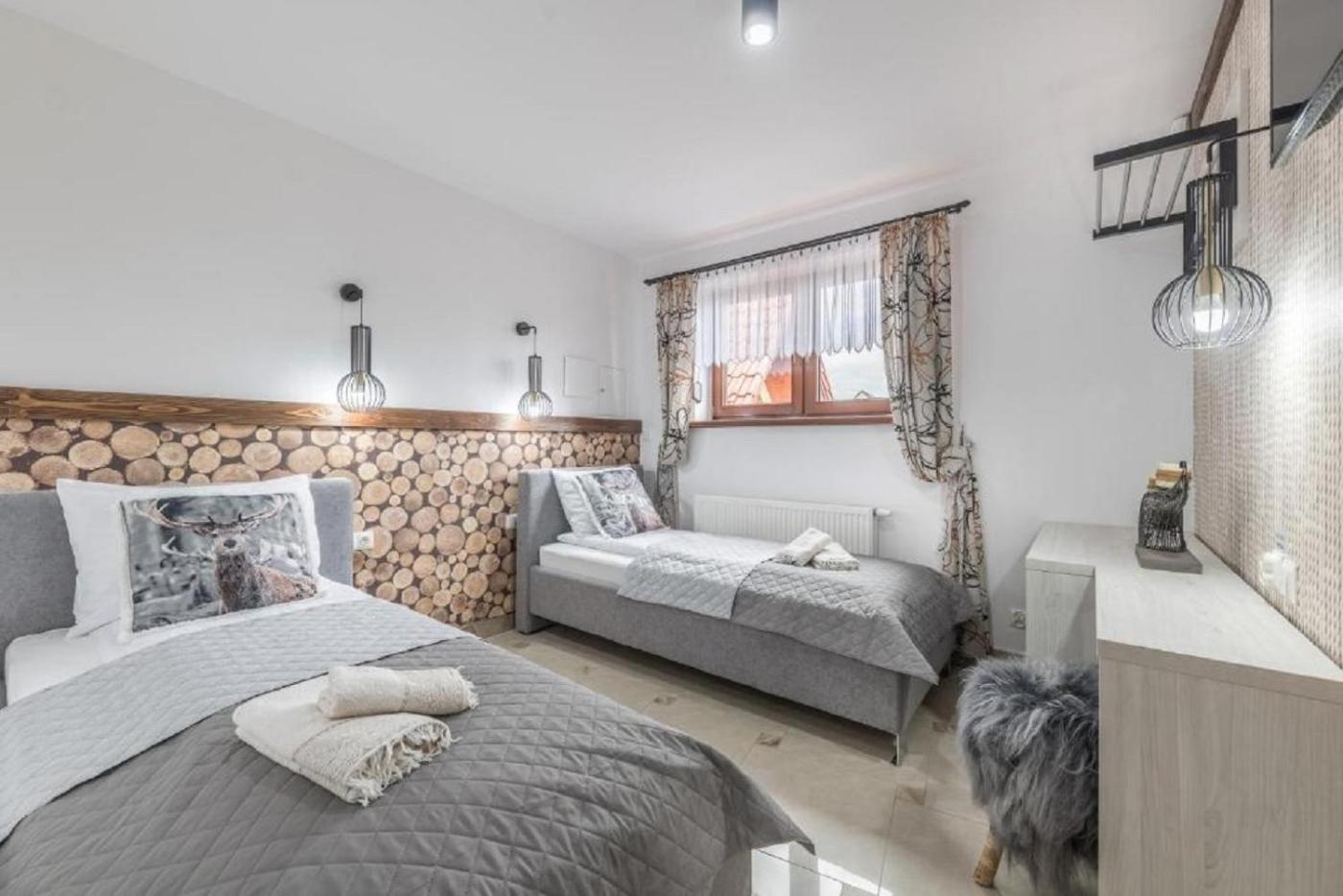 Pokój Czteroosobowy z wanną. Jest to pokój czteroosobowy z prywatnym wejściem, dźwiękoszczelnymi ścianami, tarasem z widokiem na góry oraz prywatną łazienką z wanną. W tej opcji zakwaterowania do dyspozycji gości są 2 łóżka. Pokój Czteroosobowy - 5 osobowy. Powierzchnia pokoju ok.: 24 mkw.