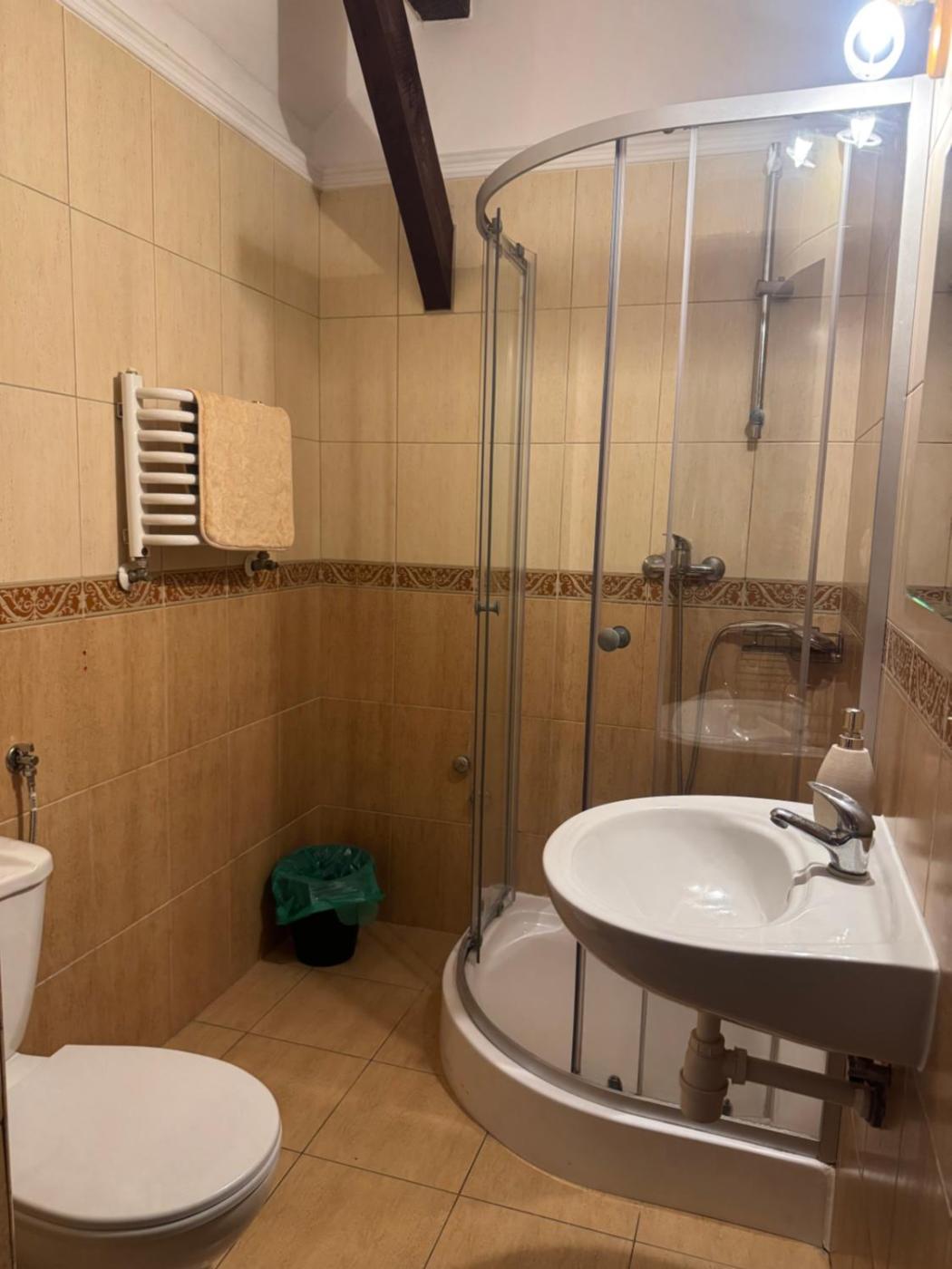Pokój z 2 łóżkami pojedynczymi. The twin room features a wardrobe and a sofa, as well as a private bathroom boasting a walk-in shower. This twin room has parquet floors, heating and a TV. The unit has 2 beds. Pokój z 2 łóżkami pojedynczymi - 2 osobowy. Powierzchnia pokoju ok.: 12 mkw. ;