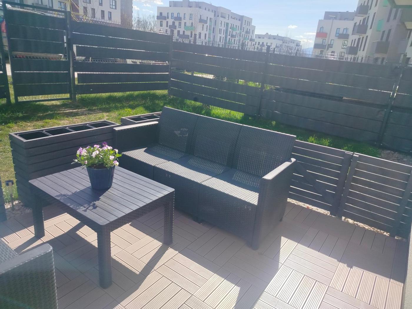 Apartament z 2 sypialniami. This apartment includes 1 living room, 2 separate bedrooms and 1 bathroom with a bath and free toiletries. In the kitchen, guests will find a stovetop, a refrigerator, a dishwasher and kitchenware. Boasting a terrace with garden views, this apartment also offers a washing machine and a flat-screen TV with streaming services. The unit has 3 beds. Apartament - 5 osobowy. Powierzchnia pokoju ok.: 57 mkw.