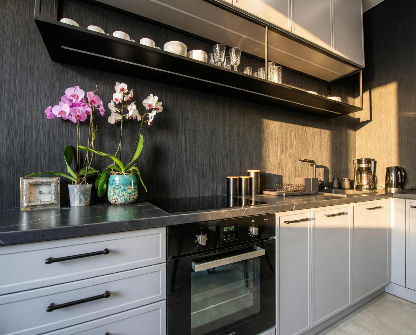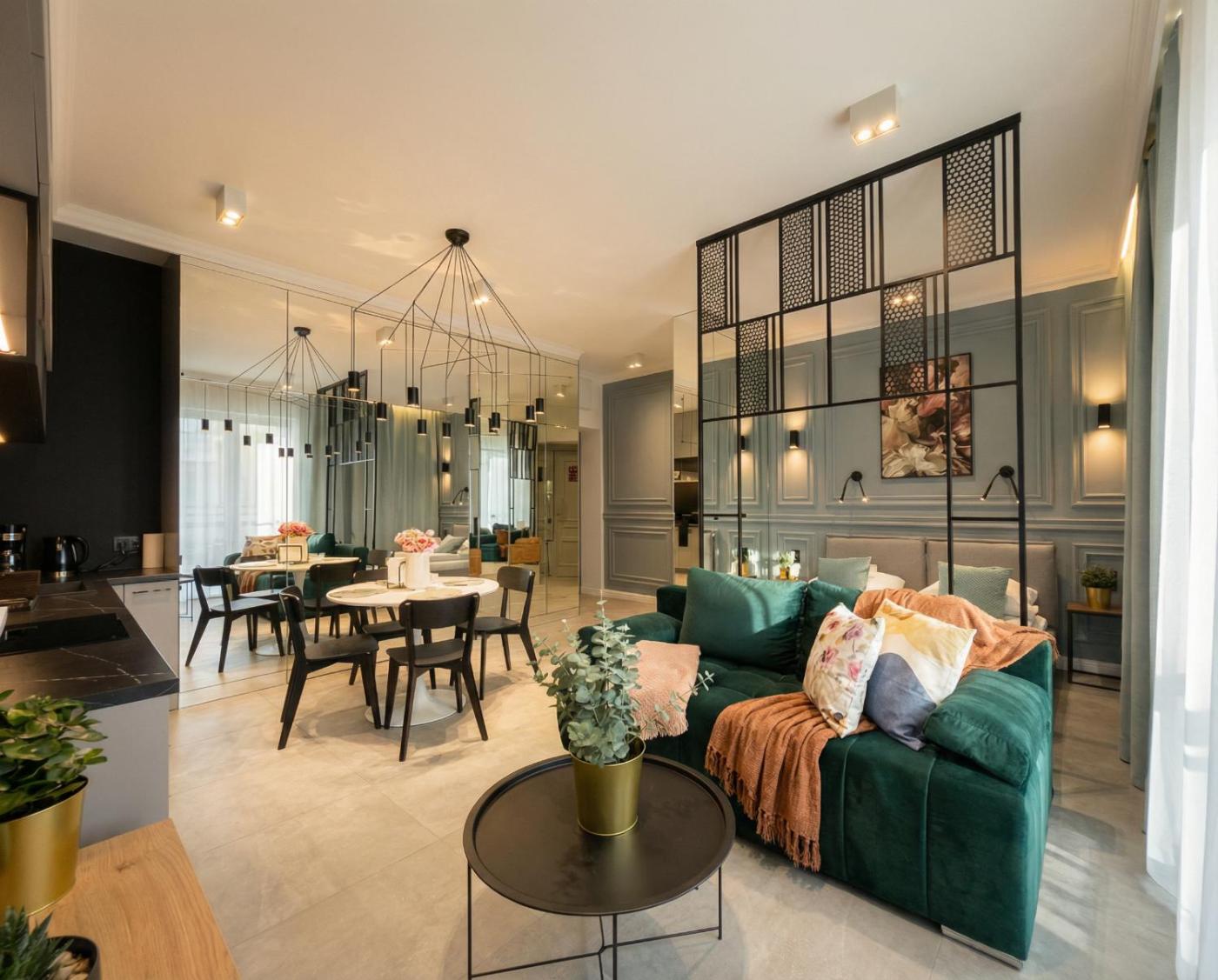 Studio typu Deluxe. The studio features a private bathroom, a washing machine, a tea and coffee maker, as well as a seating area with a flat-screen TV. The well-equipped kitchenette has a stovetop, a refrigerator, a dishwasher and an oven. Among the room amenities are a dining area, a wardrobe and heating as well as a quiet street view. The unit offers 2 beds. Studio - 4 osobowy. Powierzchnia pokoju ok.: 40 mkw.