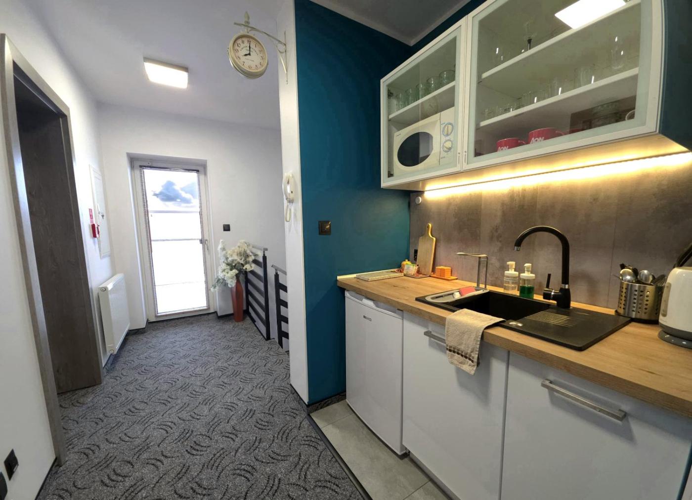 W niektórych opcjach zakwaterowania zapewniono także aneks kuchenny z lodówką i płytą kuchenną.