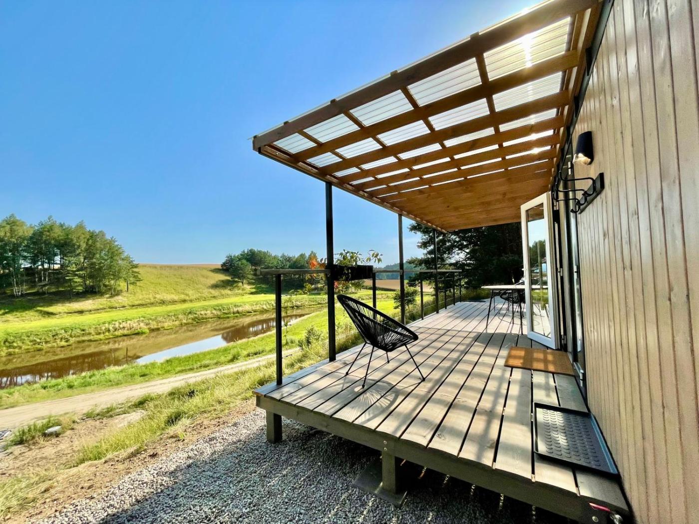 Dom z 1 sypialnią. Featuring a private entrance, this holiday home consists of 1 living room, 1 separate bedroom and 1 bathroom with a shower and a hairdryer. The fully equipped kitchen has a stovetop, a refrigerator, a dishwasher and a tea and coffee maker. The unit features soundproof walls, lake views, a terrace and winechampagne is provided for guests. The unit offers 2 beds. Dom wakacyjny - 4 osobowy. Powierzchnia pokoju ok.: 35 mkw.